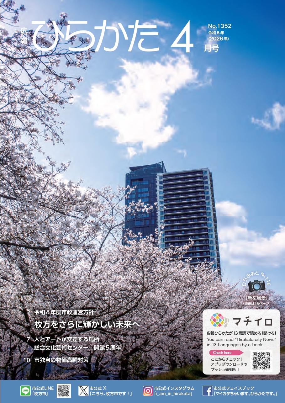 新着情報3月27日「令和8年度枚方市食品衛生監視指導計画(案)」に係るインターネットアンケートの実施結果について 3月27日【令和8年度】小中学校就学援助制度について3月26日懲戒処分の公表3月26日まちづくりワークショップ参加者募集中!!3月26日2026枚方市緑化フェスティバルのご案内 3月26日【教育委員会】任期付短時間勤務職員(図書館サービス従事員)の募集【令和8年(2026年)6月採用】3月26日車塚公園3月26日【令和8年4月8日から利用方法が変わります!!】枚方市役所駐車場のご案内3月26日物価高騰対応重点支援給付金「食料品等の物価高騰対策に係る給付金」について3月26日【はたちの記念に】枚方市「はたちのつどい」検討委員を募集します!新着情報一覧新着情報RSS