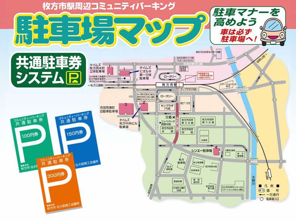 参加加盟店等についてはこちらをご覧ください⇒枚方市駅周辺コミュニティーパーキングのホームページ
