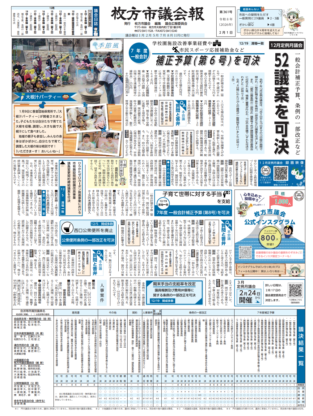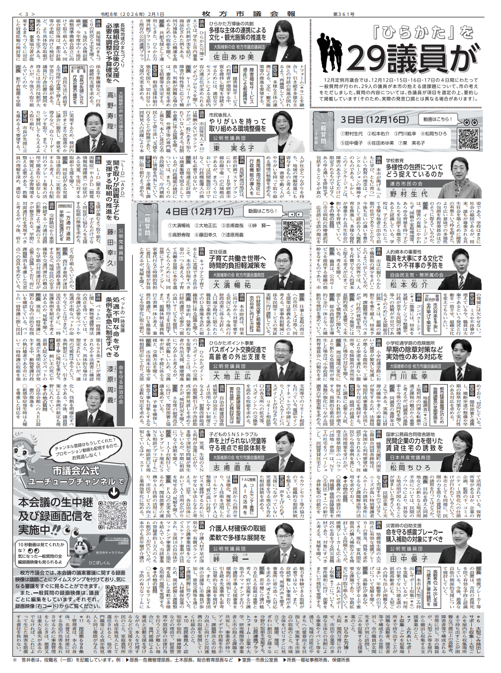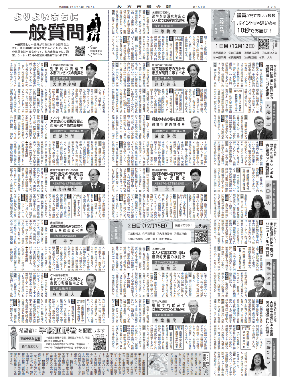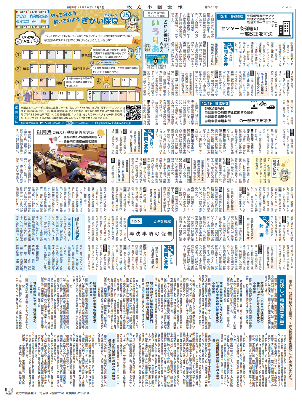 枚方市議会報第361号(令和8年(2026年)2月号)