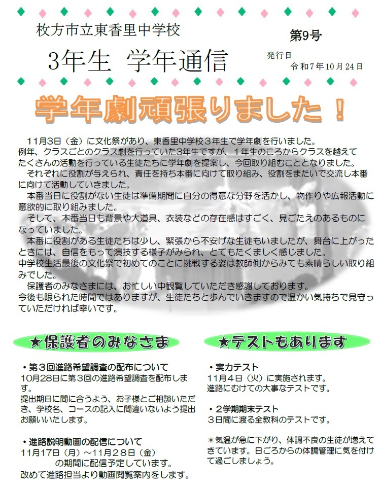 枚方市役所 教育機関(市立中学校19校) 東香里中学校