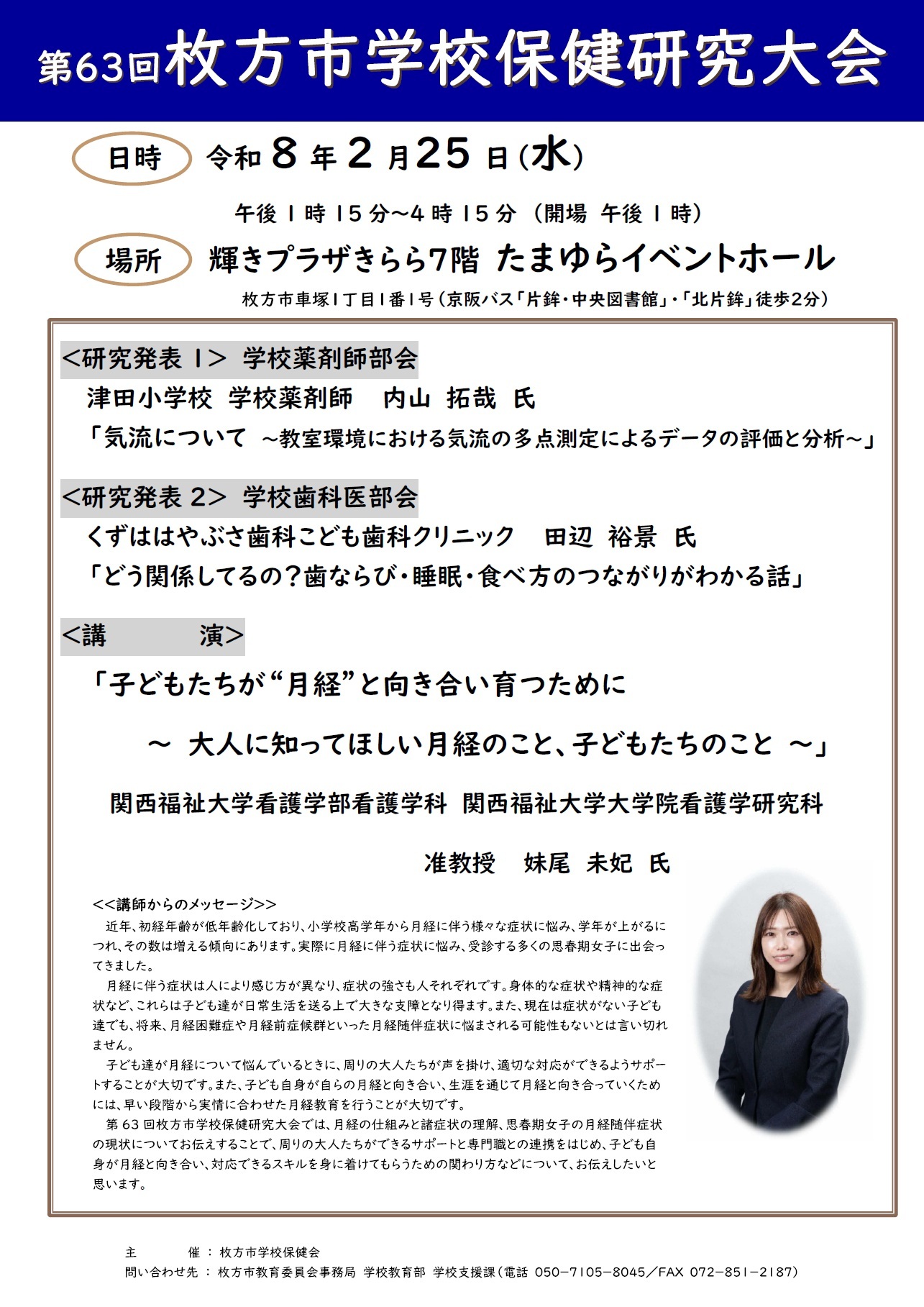 令和8年2月25日13時15分より「第63回枚方市学校保健研究大会」を開催します
