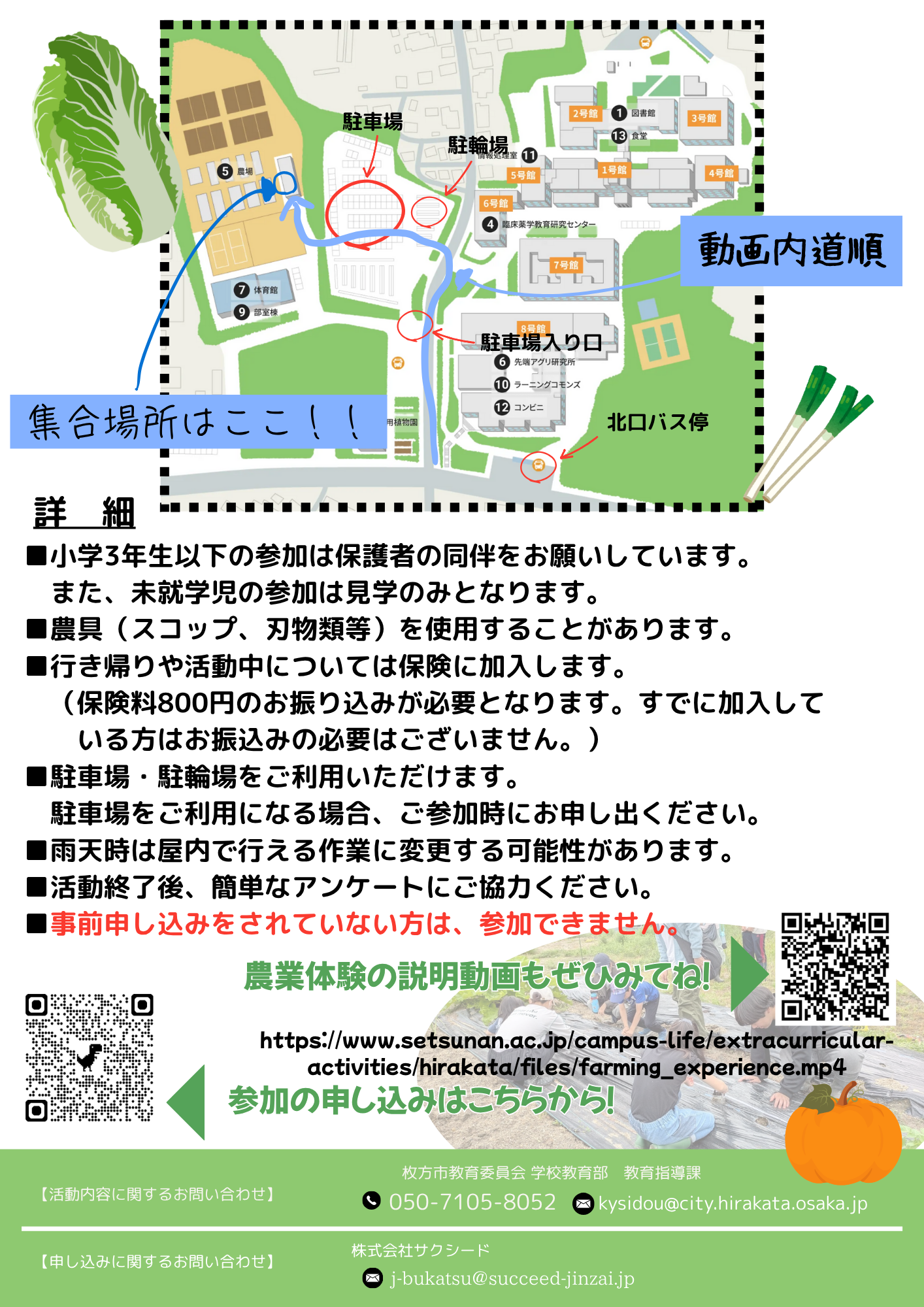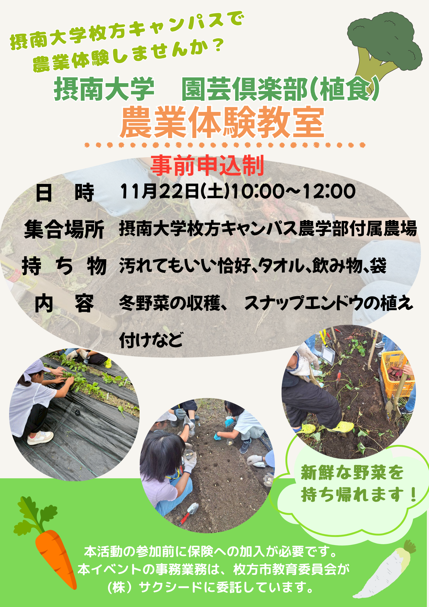 【第6回】摂南大学園芸倶楽部(植食)による農業体験活動 案内