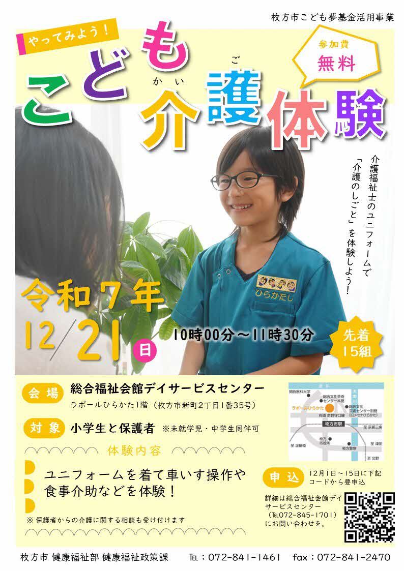 12月21日(日)開催 小学生向け介護体験(未来発見!ひらかたチャレンジランド)