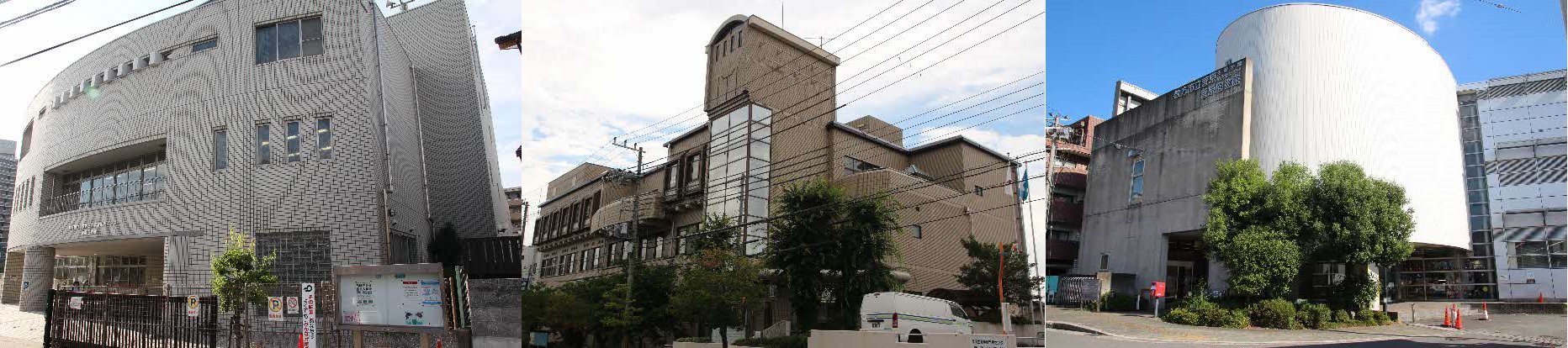 左:楠葉生涯学習市民センター 中:蹉跎生涯学習市民センター 右:御殿山生涯学習美術センター