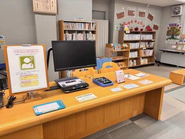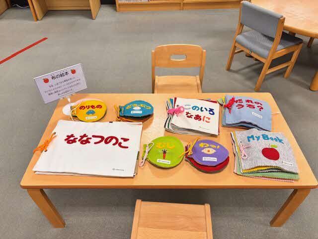 期間中、2階こどものフロアでは、布絵本や点字付き図書などの誰もが読書を楽しむための本や道具を展示し、