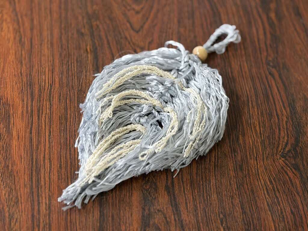 ポルトガルのロープと淀川のヨシ糸を織り交ぜて「マクラメタペストリー」を制作(サイズ:縦20cm×横10cm程度)