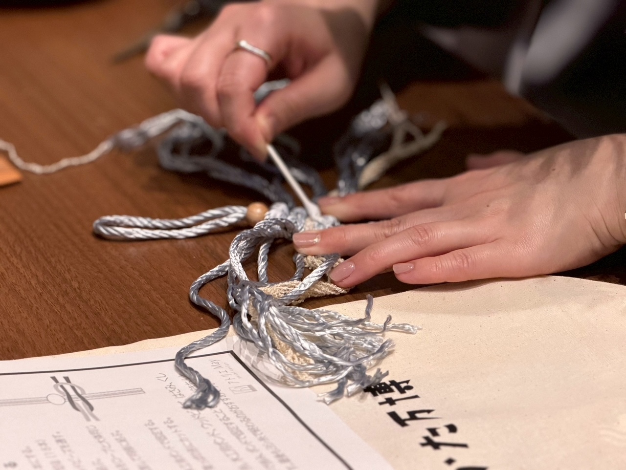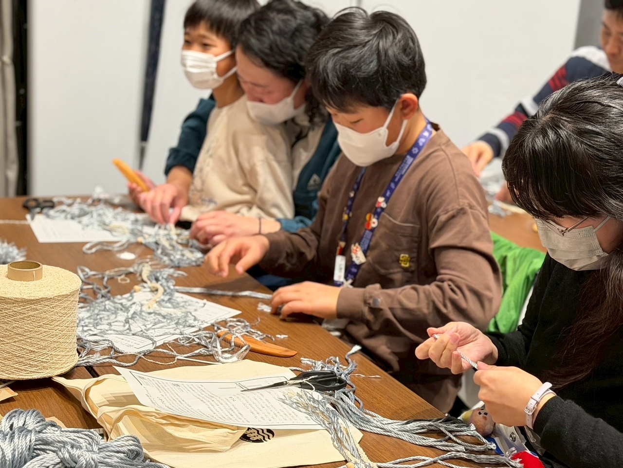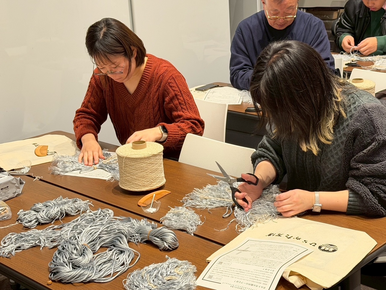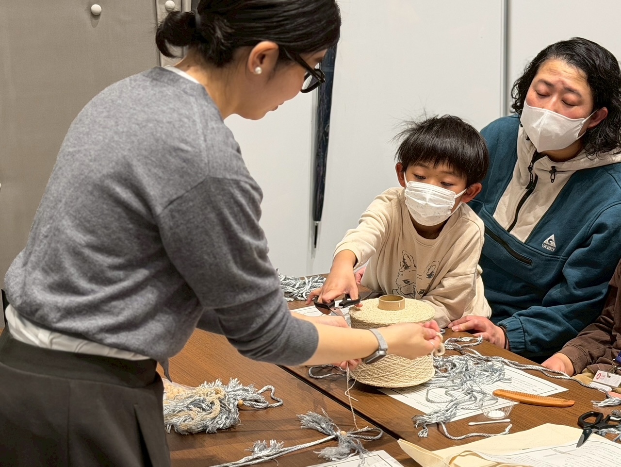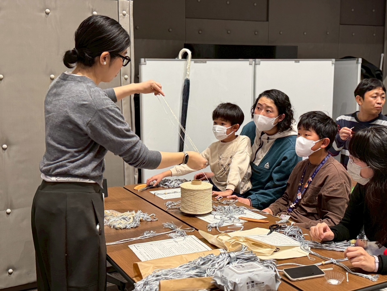 当日は計40人以上の方に参加いただき、ロープとヨシ糸を組み合わせて、皆さん思い思いに制作されていました。参加者は「ポルトガル館の貴重なロープなので緊張した。実際に触れて嬉しかった。かばんにつけて自慢したい。」と話しました。