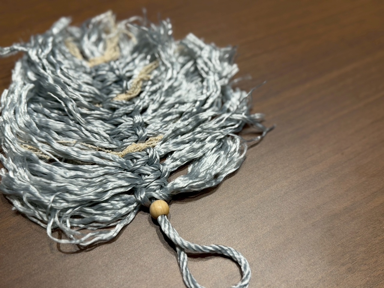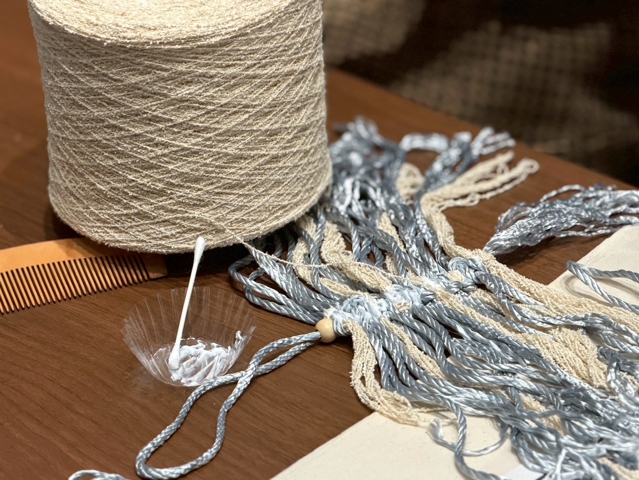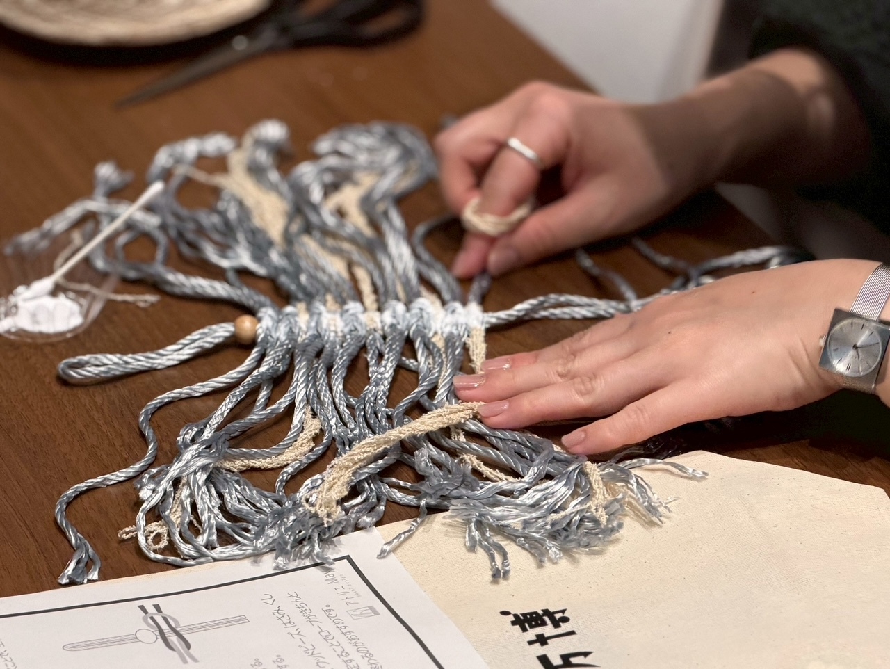 ロープとヨシ糸を紡いでマクラメタペストリーを制作