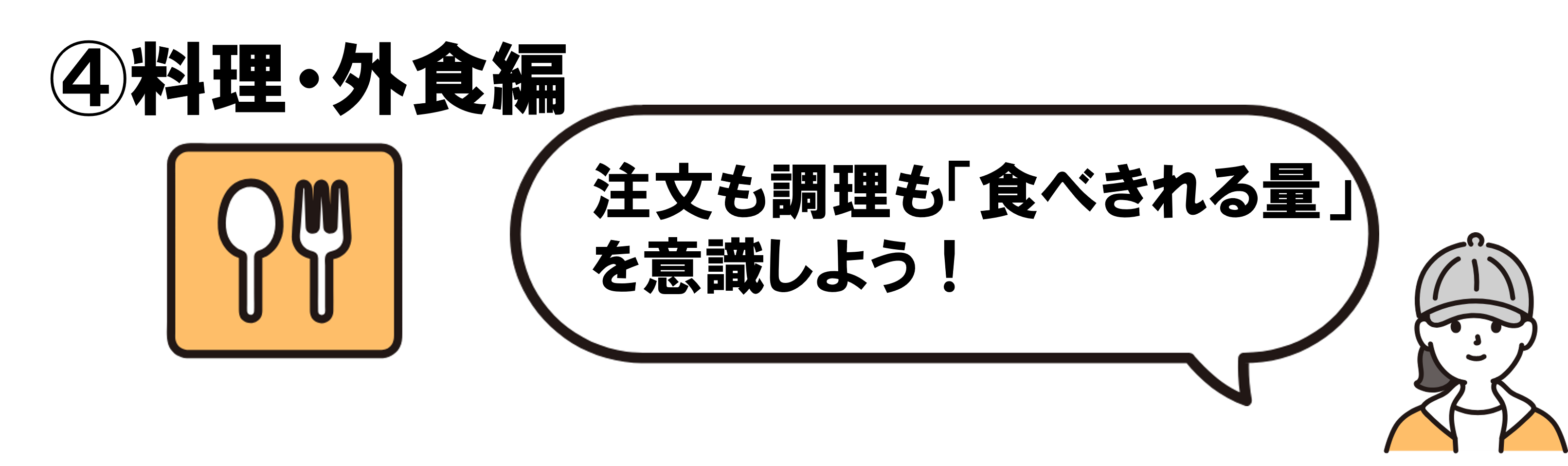 食べきれる分だけ作り、外食でも食べきれる量を注文しましょう。自分の体調や食欲に合わせることが、無理のない食品ロスの削減につながります。