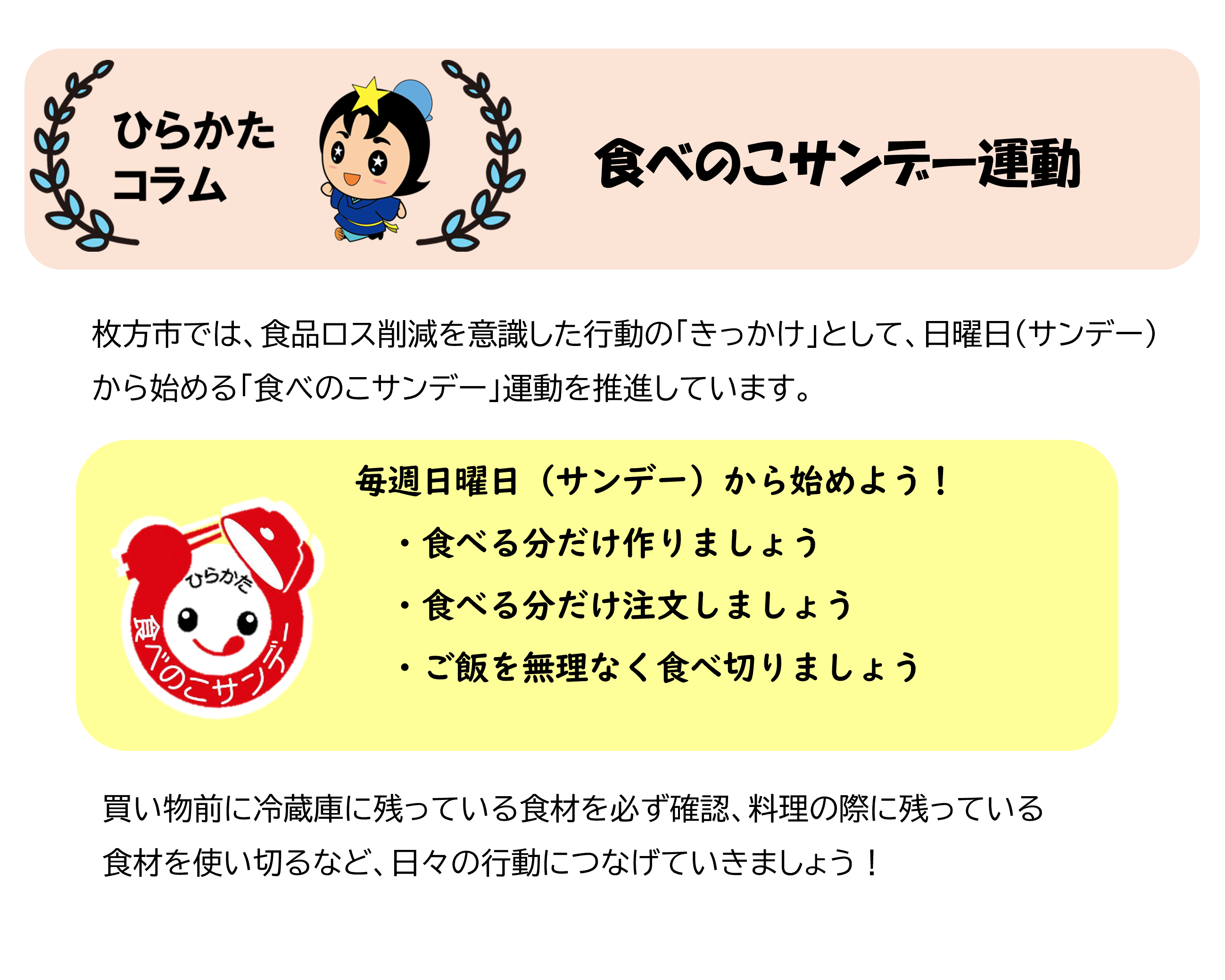 | 2026.04.10 | 枚方市食品ロスポータルサイトをオープンしました! |