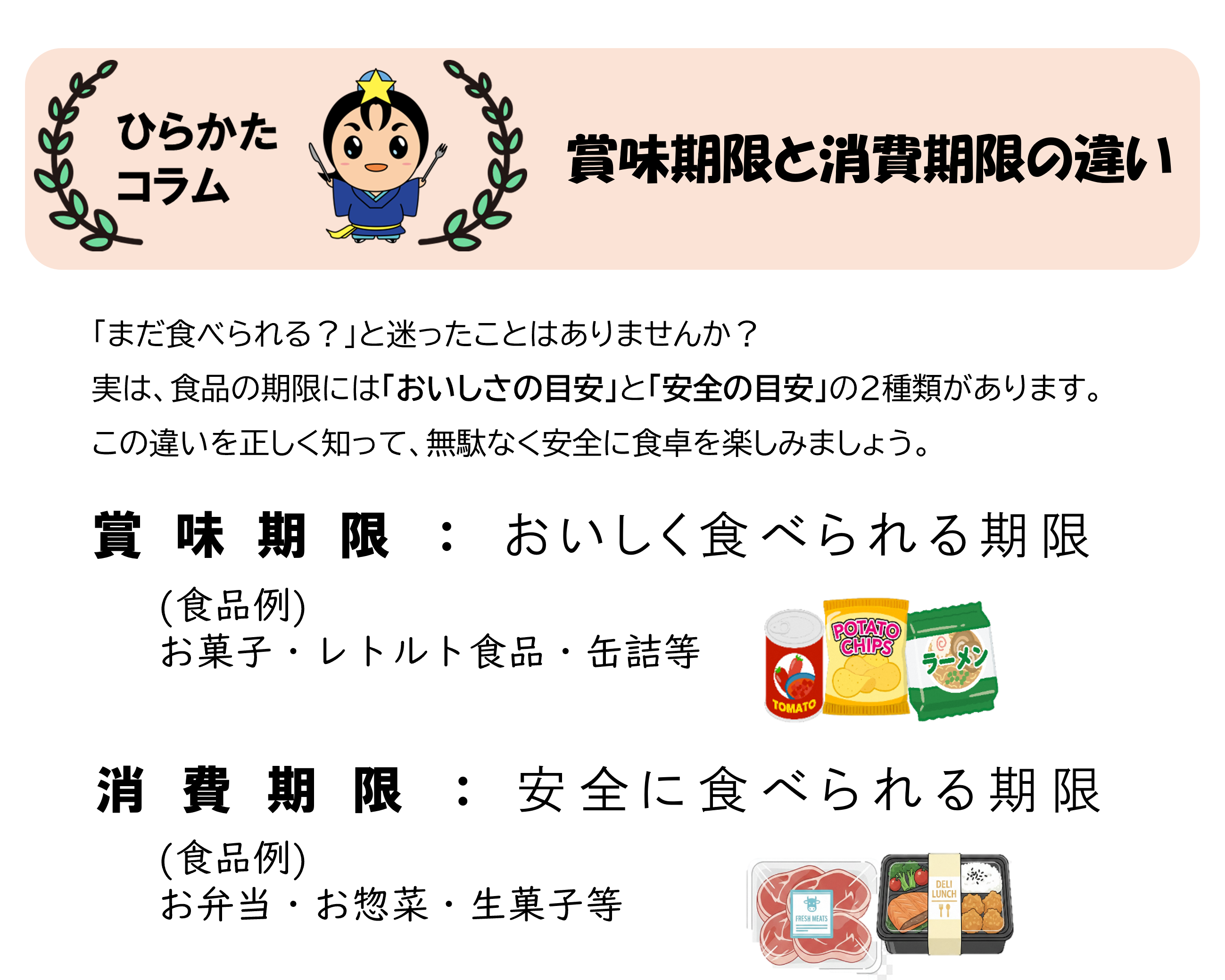 購入してすぐに食べる商品は、棚の手前にあるものから選びましょう。期限が近いものから消費することで、お店での廃棄削減につながります。