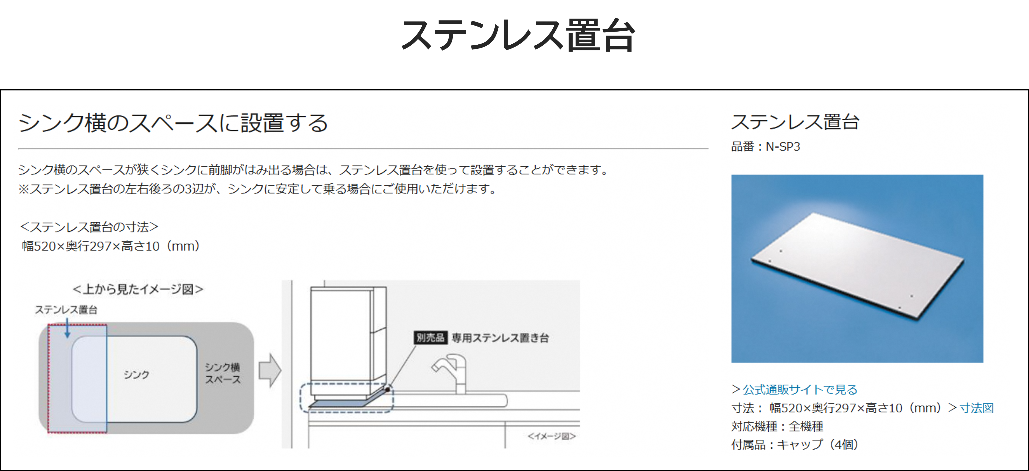 シンク上に設置場所を確保する「ステンレス置台」を貸し出します。