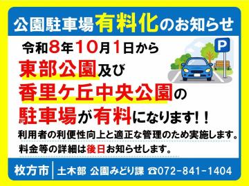 公園駐車場有料化のお知らせ(東部公園・香里ケ丘中央公園)