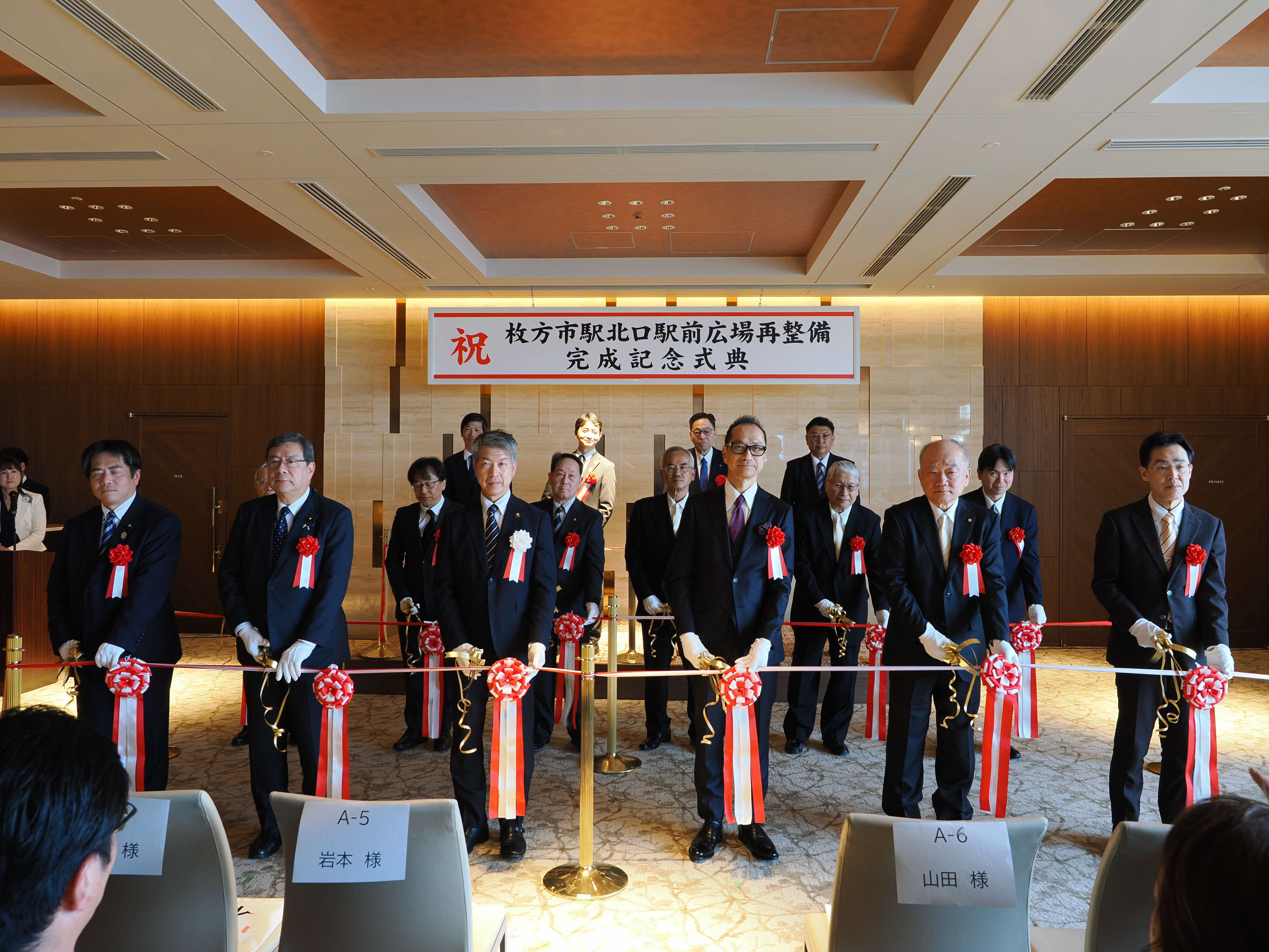 枚方市駅北口駅前広場をはじめ、枚方市駅周辺再整備により誕生した施設が、枚方市の玄関口として末永く皆さまに愛されることを祈念して、テープカットを行いました。