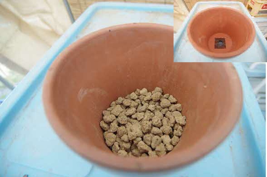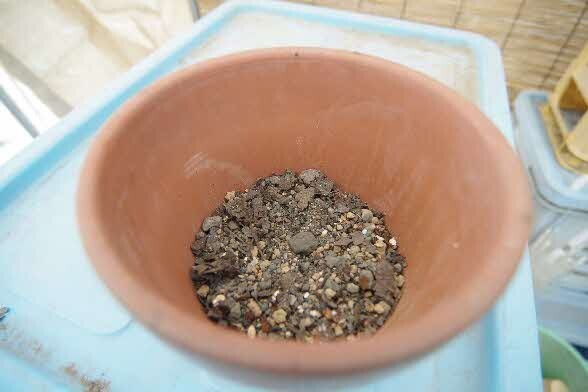 鉢底石が隠れるぐらい園芸用の土を