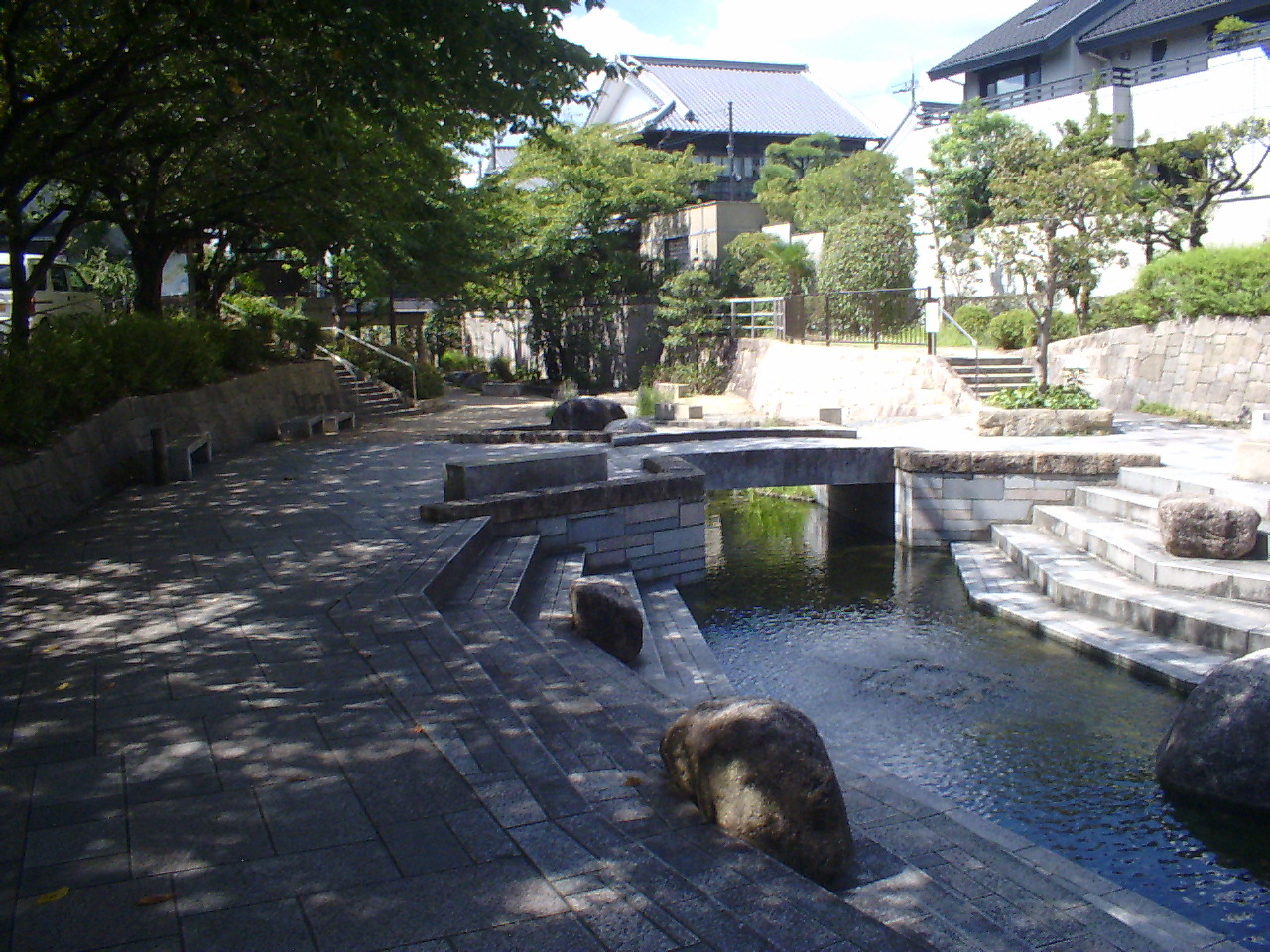 『水と歴史のふれあい広場』:その昔、この付近は『淀川』から取水した場所であり、いかにも淀川から水を引き込んでいるような施設の演出で、歴史的な香りをもった景観を構成しています。