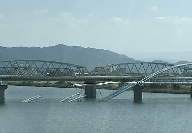 (和歌山市紀の川水管橋崩落現場の様子)
