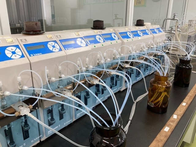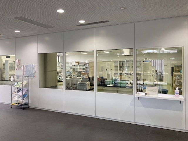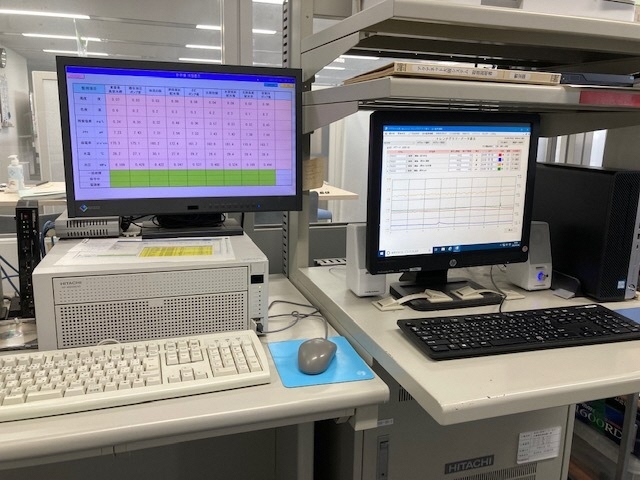 いろいろな分析機器がそれぞれの部屋に設置されています。中宮浄水場管理棟の1階にあって、壁がガラス張りになっているのでロビーから検査風景が見えますよ。