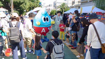 そして、イベントの最中には、なんと、枚方市上下水道局のマスコットキャラクター「アクリン」が登場!会場内の子どもたちは、おおはしゃぎ!親御さんは、写真撮影をして、楽しいひとときを過ごしていました。