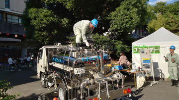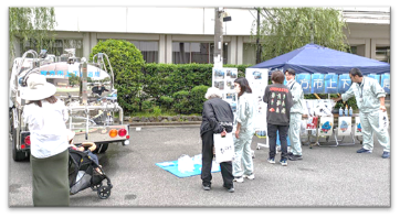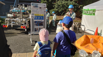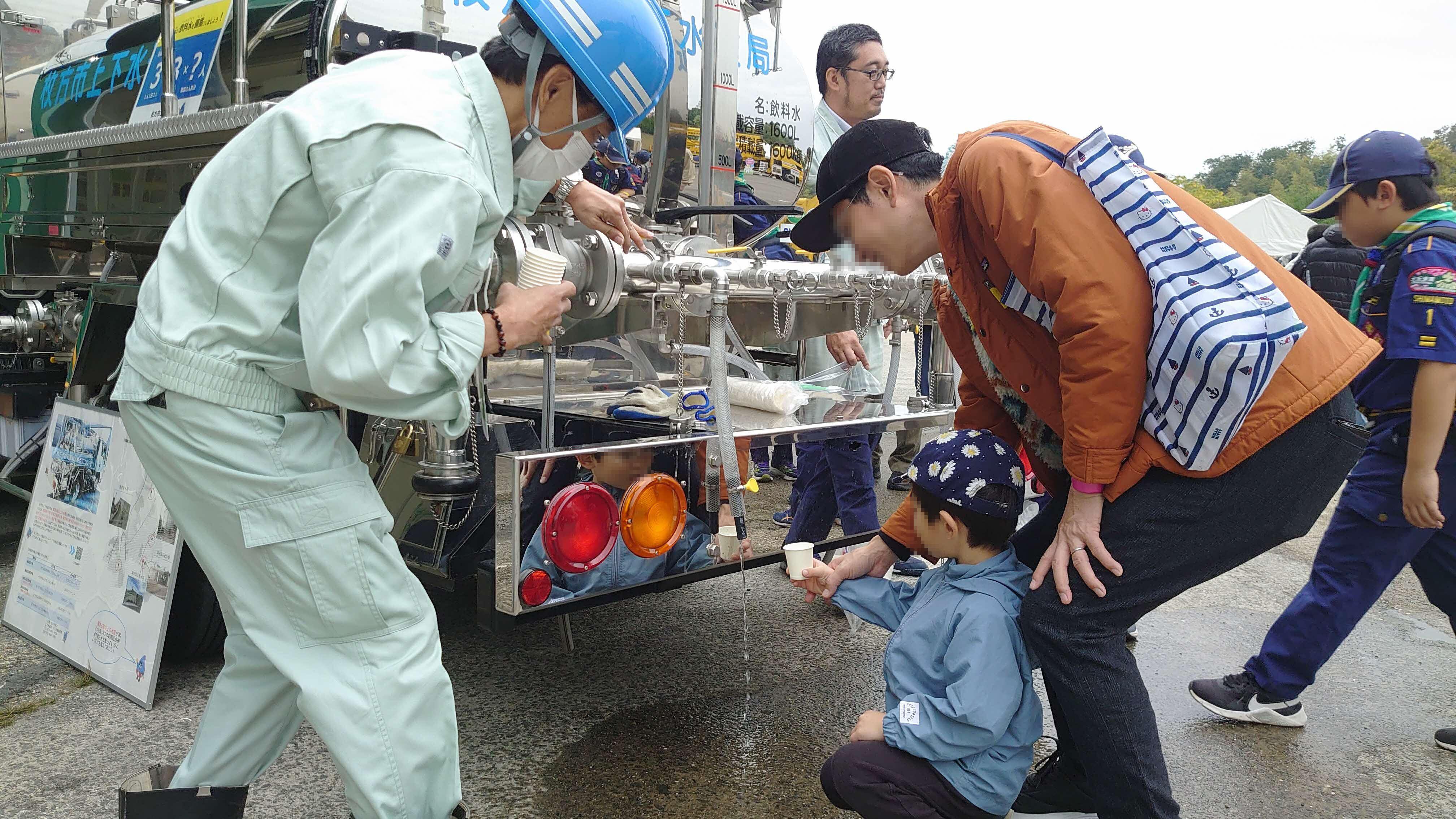 また、「給水車を活用した給水活動の実演」では、給水車の水を飲んでもらい、実際に、給水活動を体験してもらうことで、災害時に備えた「備蓄水の確保」の大切さについて、あらためて知ってもらうことができました。