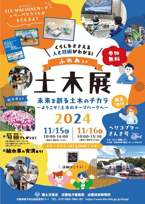 内 容:子どもから大人まで幅広い方に土木技術に触れる機会を提供し、土木に対する理解を深めることを目的に、毎年、国土交通省近畿地方整備局近畿技術事務所主催で開催されています。