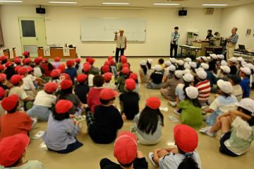 内 容:「親しまれる下水道」を目標に、渚水みらいセンターでは、小学生を対象に、プール清掃により死滅してしまうヤゴを救出し、子どもたちの手により同センターの修景池に放流する「トンボの生態観察とヤゴ放流のお集い」を平成3年度より行っています。