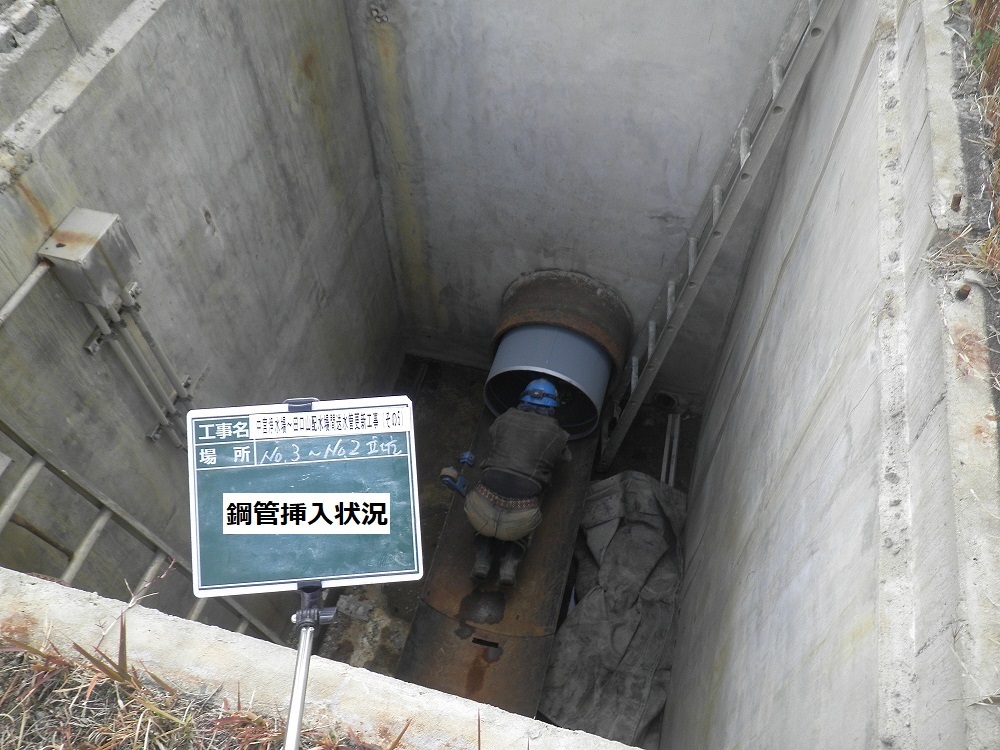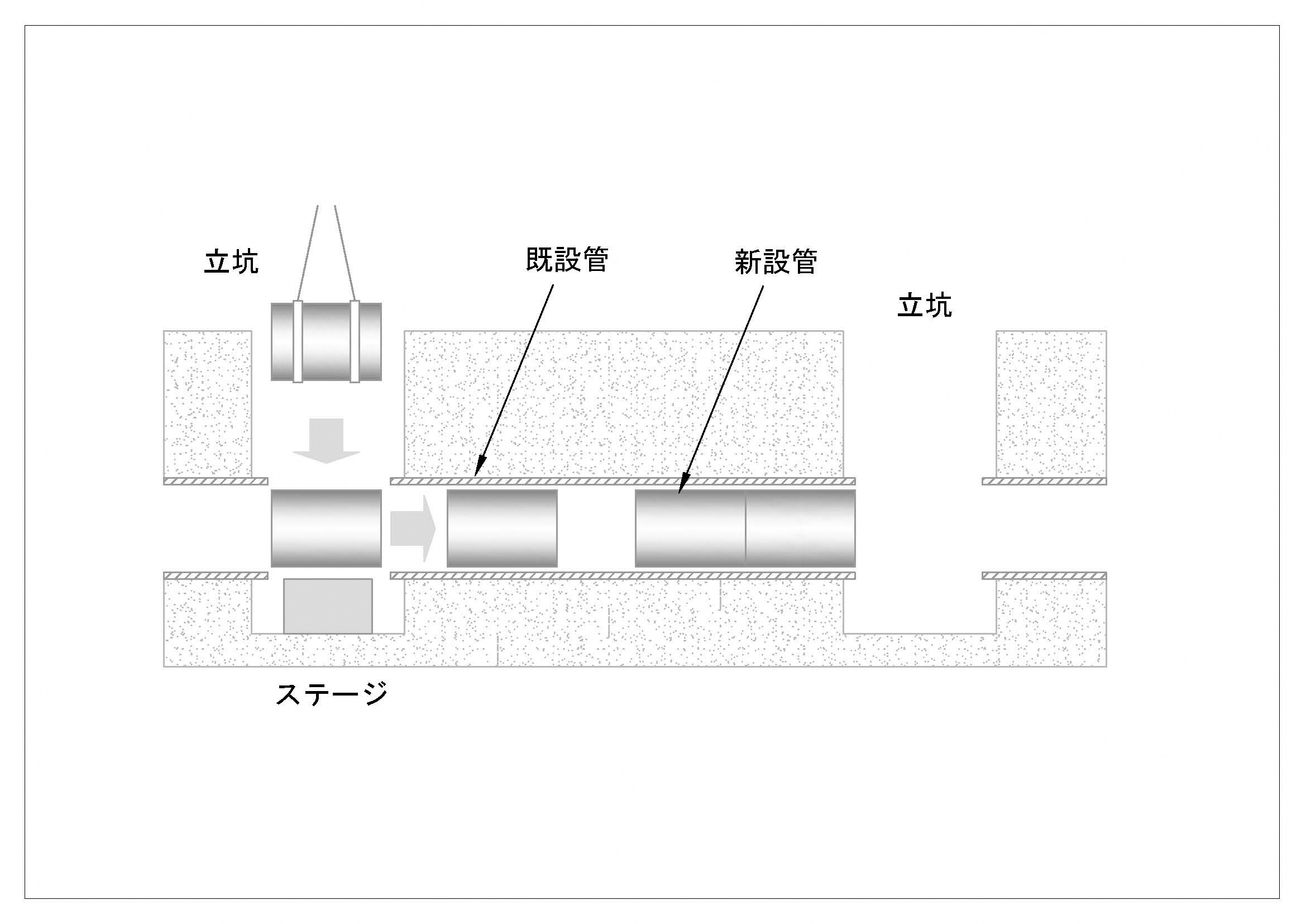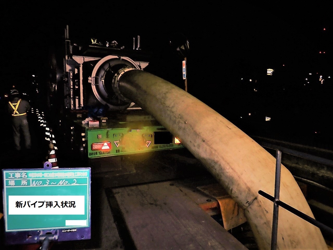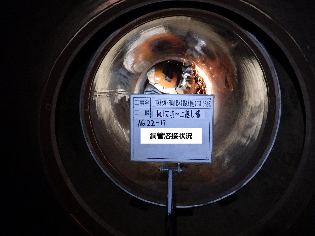 老朽水道管内に鋼管を挿入して溶接接合し、新設鋼管を布設する工法