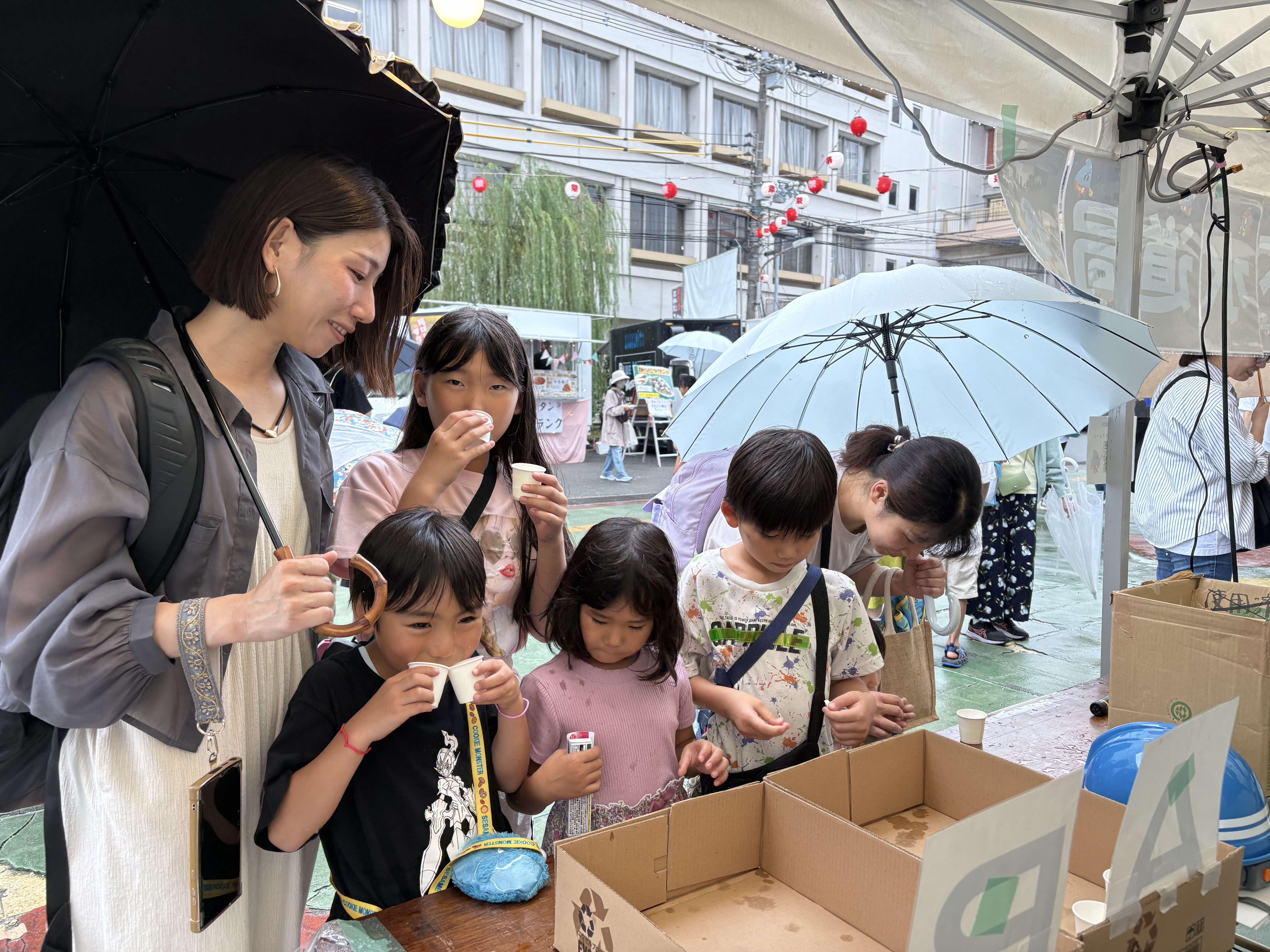 また、給水車から、お渡しした紙コップに市民の方々に自らバルブ操作して汲み上げる給水体験
