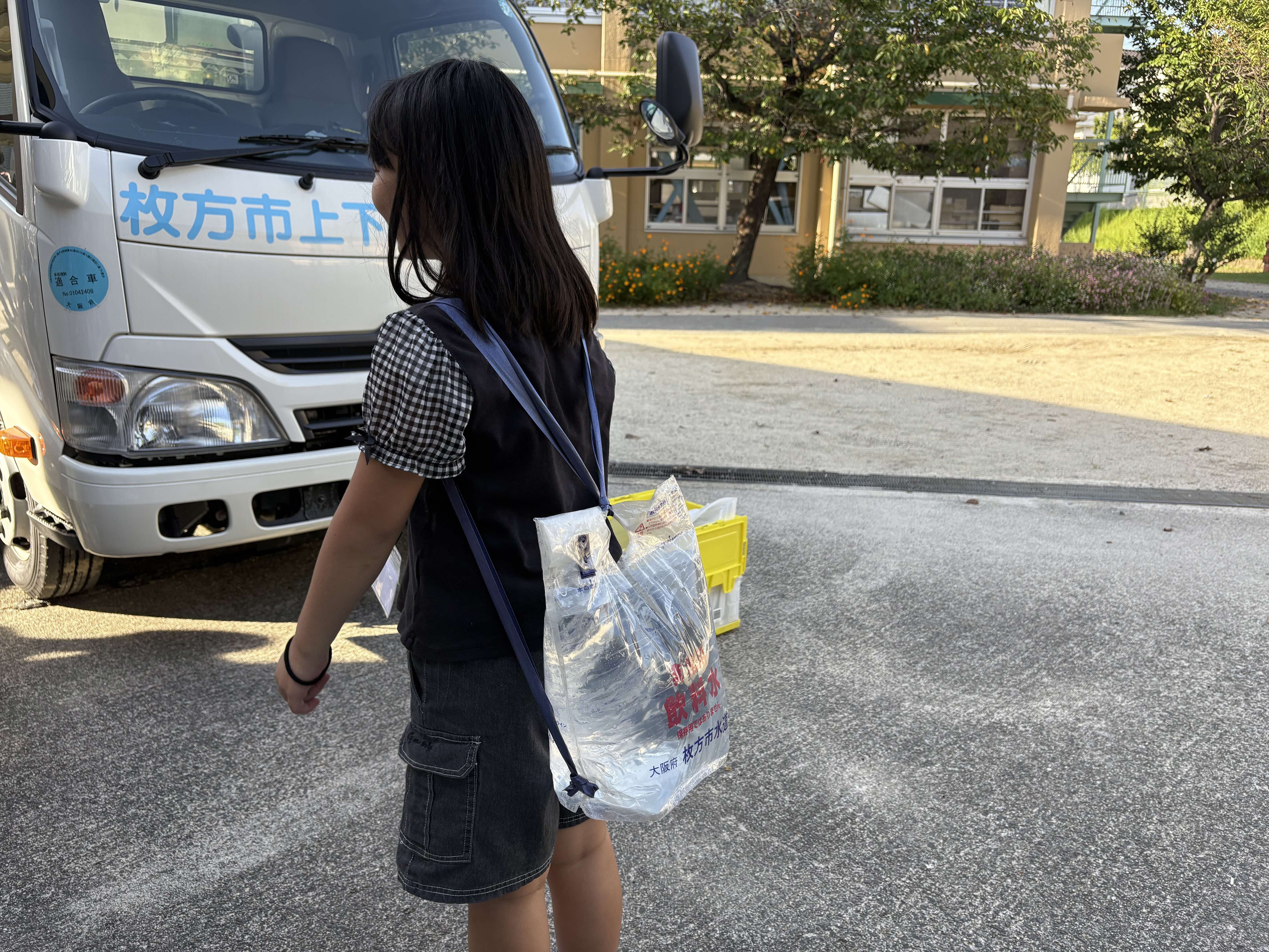 上下水道局職員からは、実際に令和6年1月1日に発生した能登半島地震の際に枚方市上下水道局の給水車を1台派遣し、穴水町において給水活動を実施してきたことや、いつ起こるかわからない災害に備えて、普段から飲み水(一人当たり1日3Lを目安に3日分で9L)を蓄えておくことが大切であることをお話ししました。
