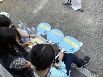 実際に給水車からペットボトルに水を入れる際、児童生徒からは、「もったいないからこぼさないように入れなきゃ!」という声があちこちで聞こえました。また、給水袋(6キロ)を手にもってもらい重さを体感してもらった際には、「ランドセルよりもかるい!」「思ったより軽い」と災害発生時には大人の助けになりそうな心強いコメントもありました。
