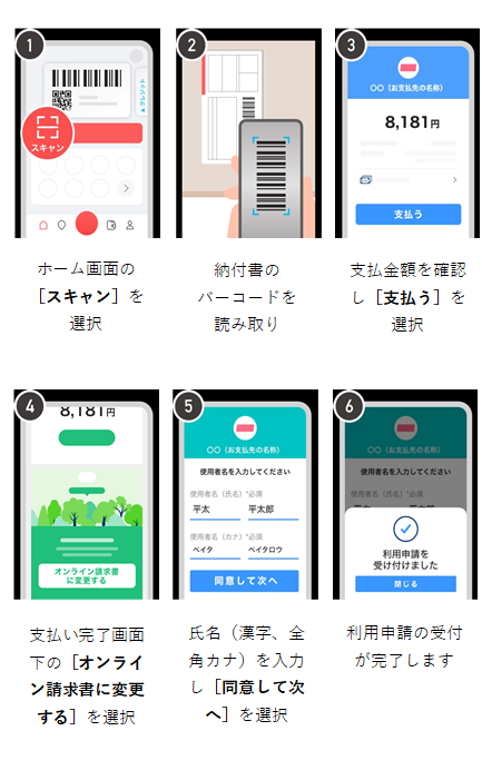 - 本サービスの解約は、PayPayアプリの請求履歴画面からお手続きください。解約後は紙の納付書を送付する方法に切り替わります。