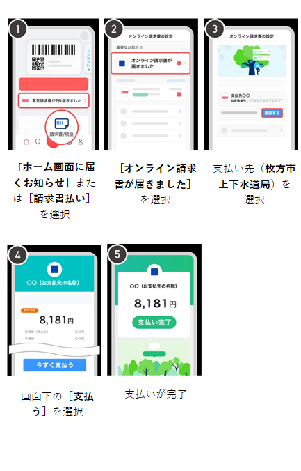 - [オンライン請求書が届きました](枚方市上下水道局)を選択