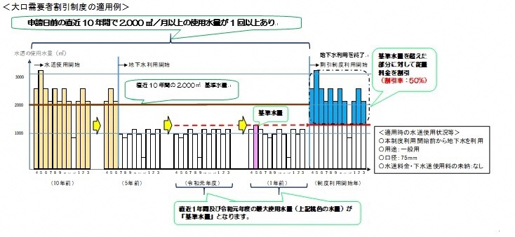 ・以下の主な適用条件(※1)を満たす大口使用者様からの申請(※2)により、個別に基準水量(※3)を設定させていただきます。