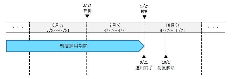 <次回料金改定日以前の検針日(9月21日)分まで適用の場合>