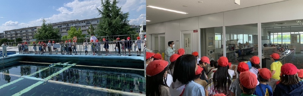 枚方市上下水道局では、水道水の浄水処理過程などを知っていただくため、小学校や自治会などの団体を対象に中宮浄水場の施設見学を行っています。