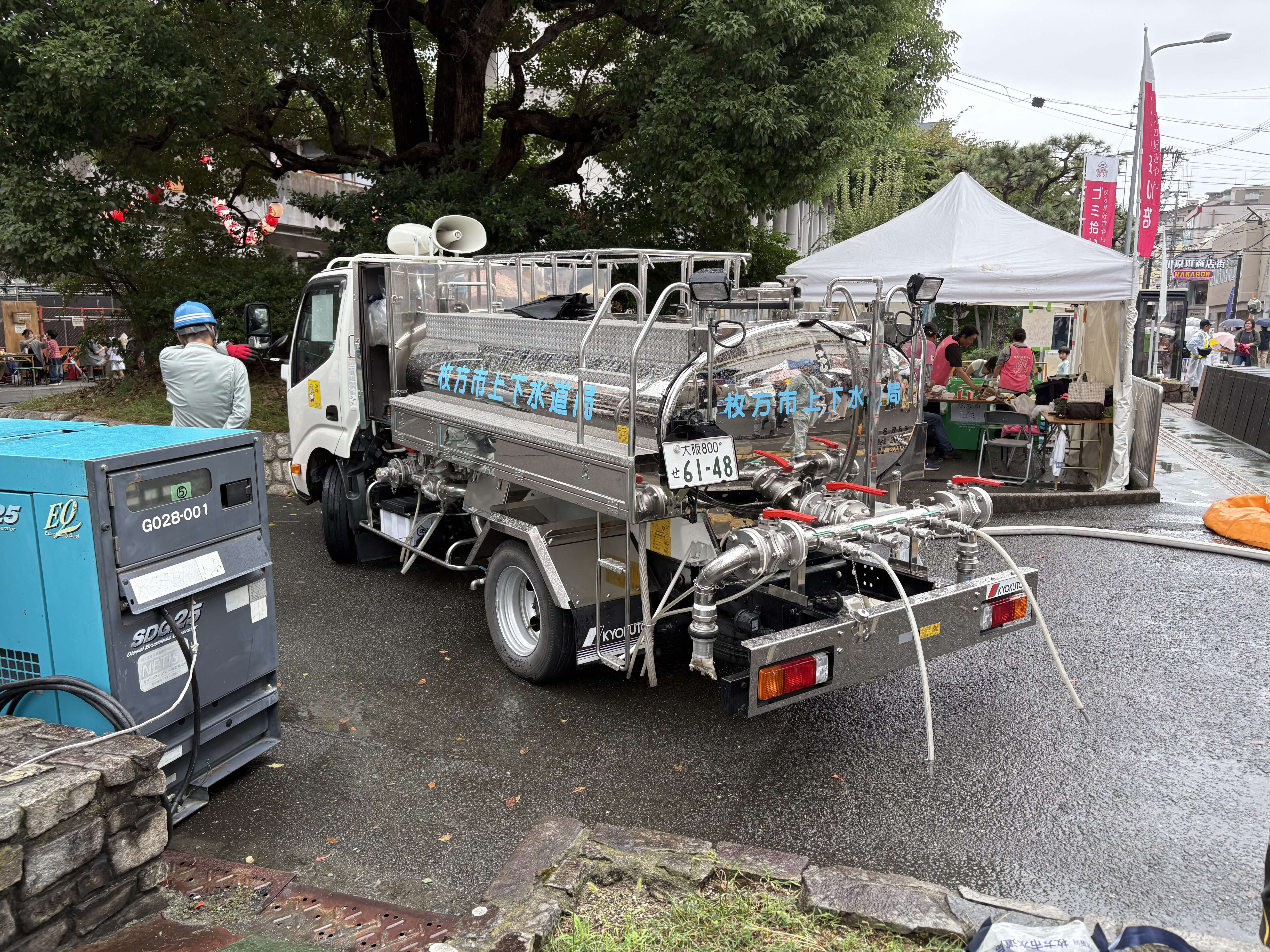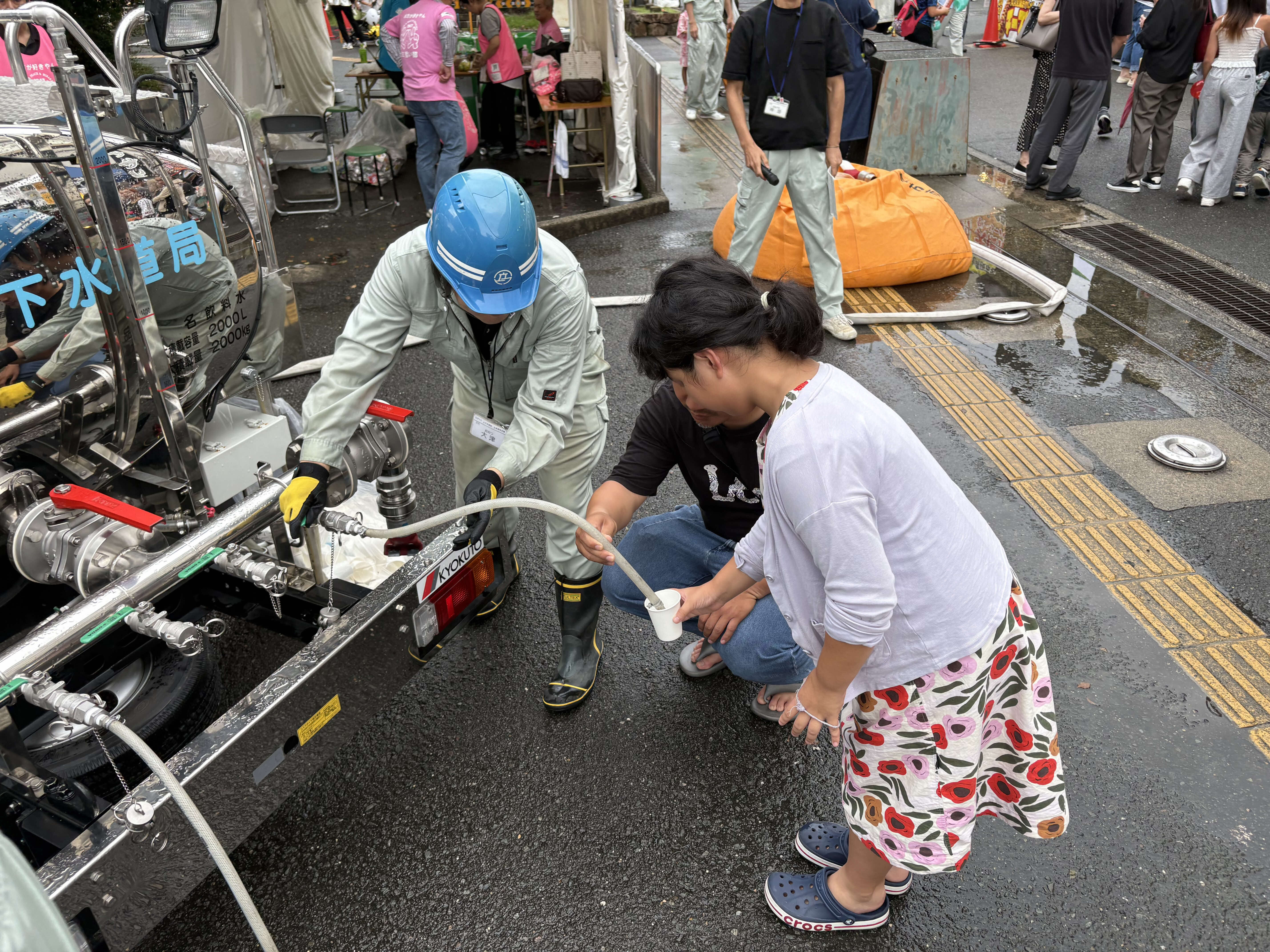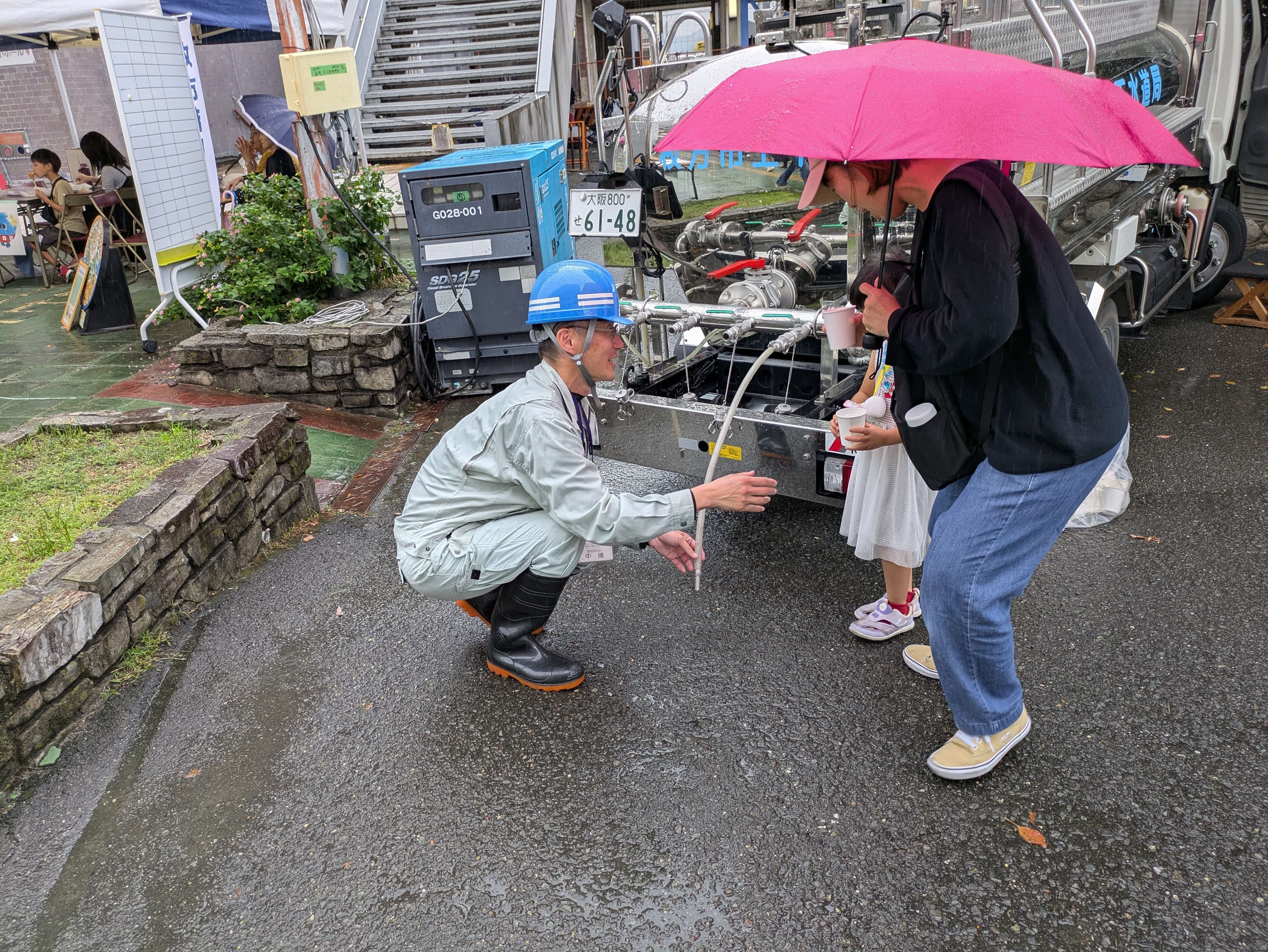 今回も給水車も参加させていただき、来場者の方々へ給水車のタンクに入っている水を実際に飲んでいただきました。