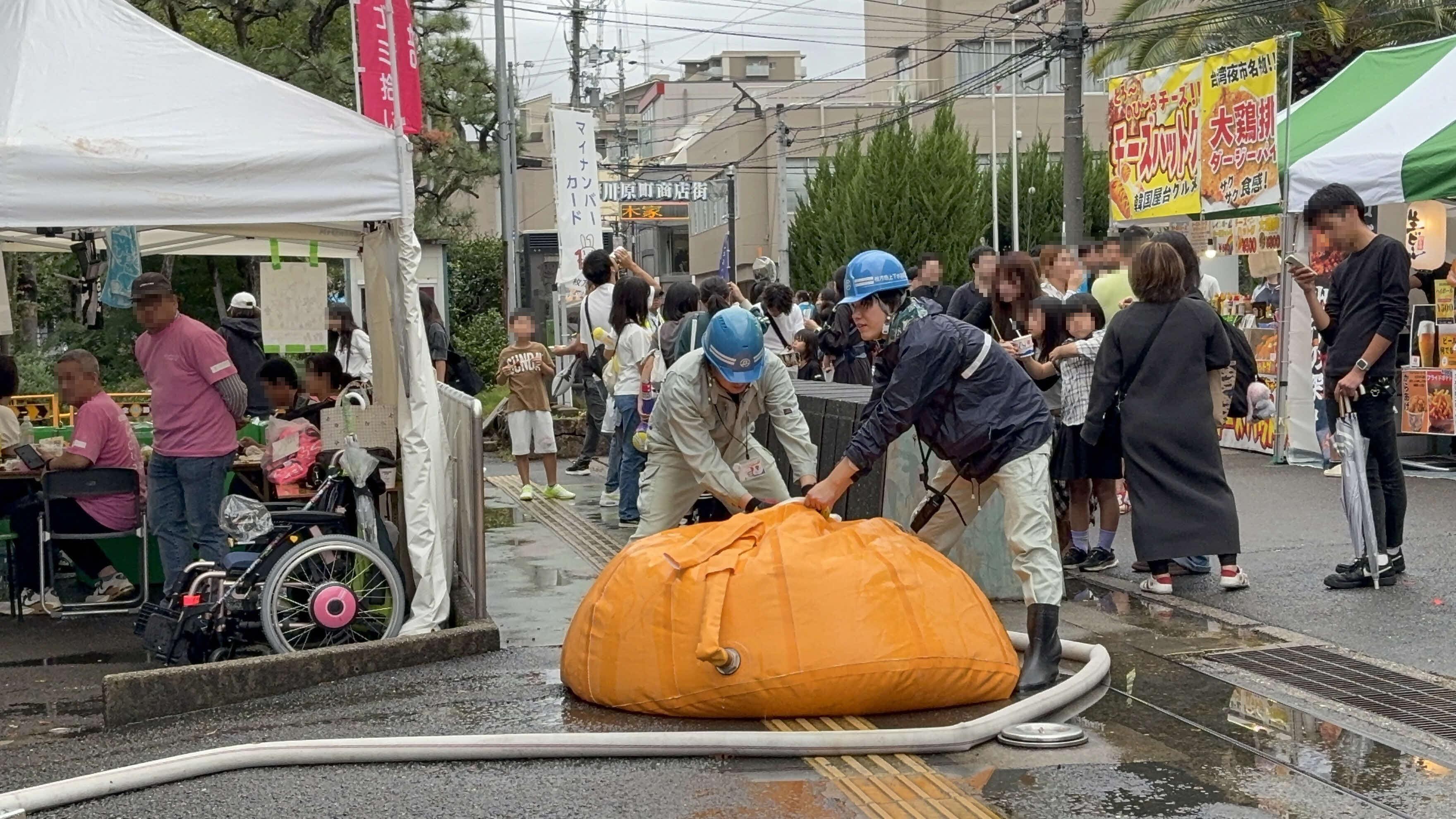 土のうステーションにも関心が高く、約20キロの土のうの重さを体験してもらったり、土のうステーションの場所も確認してもらったりして、充分に上下水道局の事業を広められる場になりました。