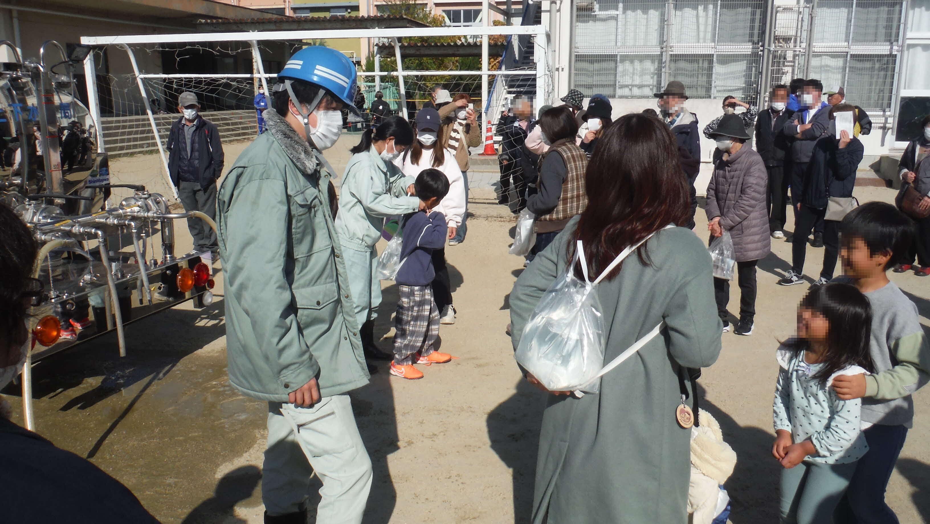今回は、現在、工事で使用している直径800mm、長さ約4mの水道管の実物を展示し、実際にその水道管の中をくぐってもらいました。特に地元の小学生たちは、普段できない体験だったので、非常に楽しそうなのが伝わってきました。