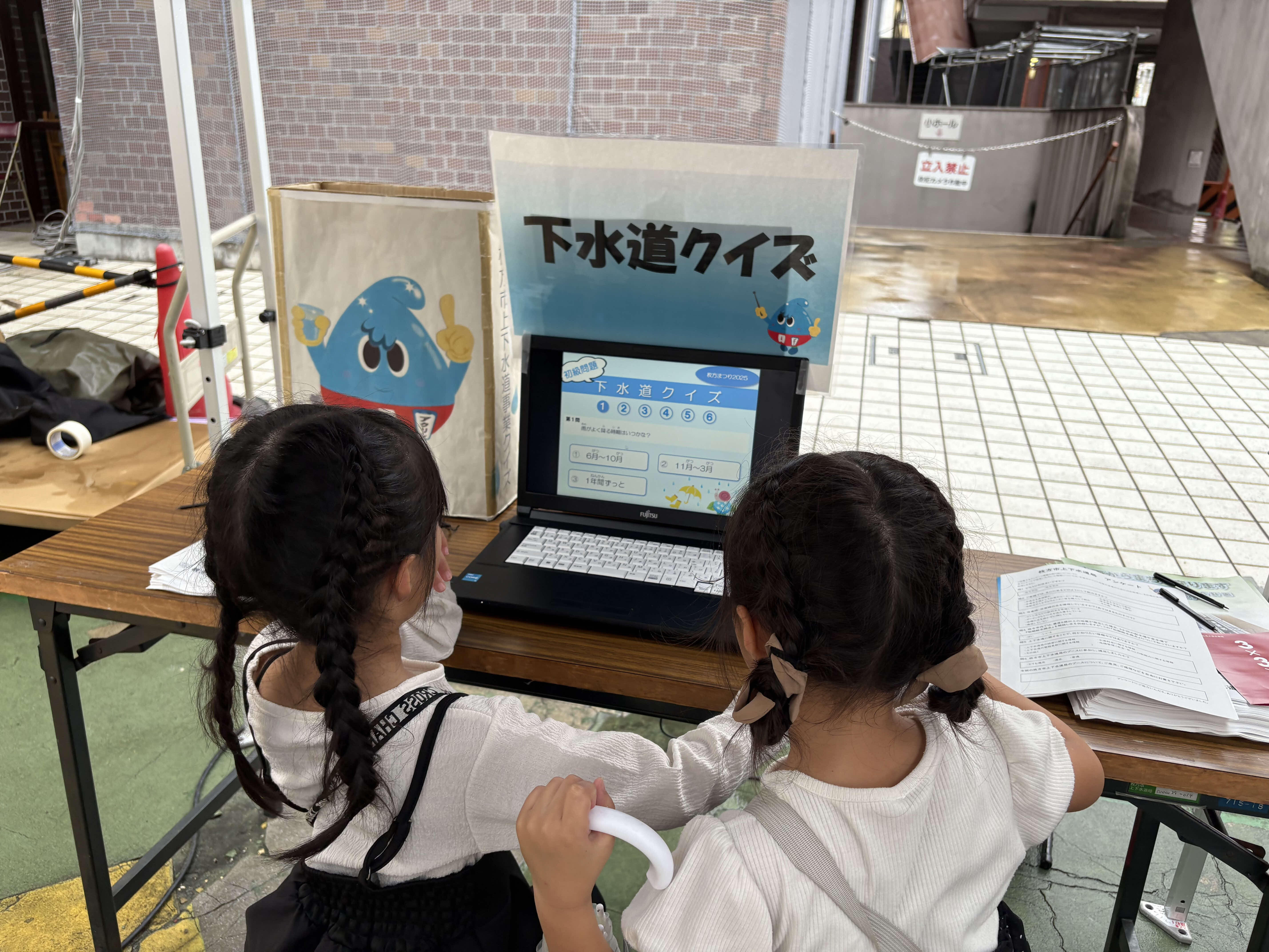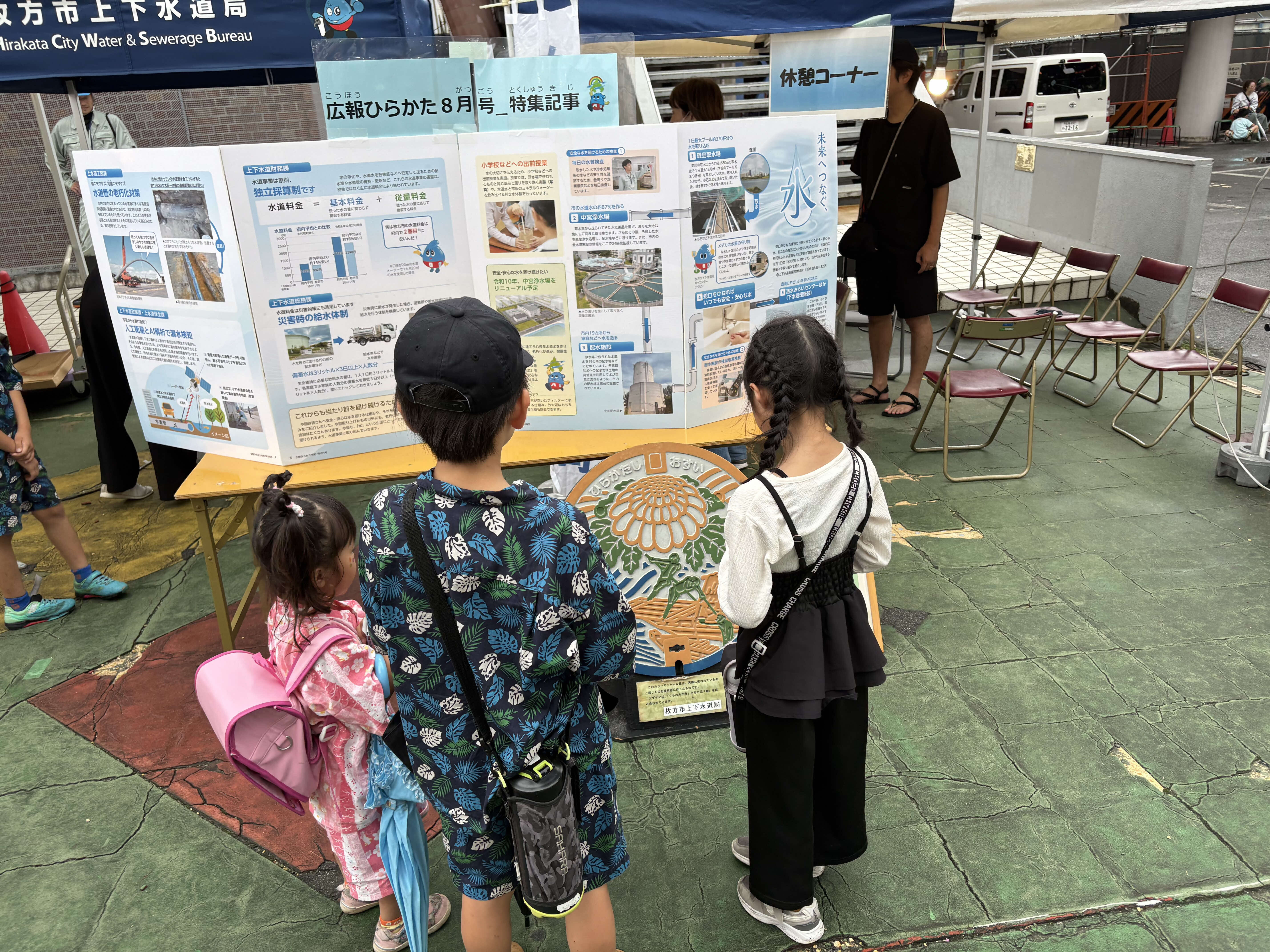 また、ブース内ではパネル展示として「初期給水拠点の位置図」や「中宮浄水場更新事業について」など。その他、展示用の模型や下水道クイズなどを通して、私たちの生活に欠かせない上下水道のことについて、とても大切なことなんだと再確認してもらうことができました。
